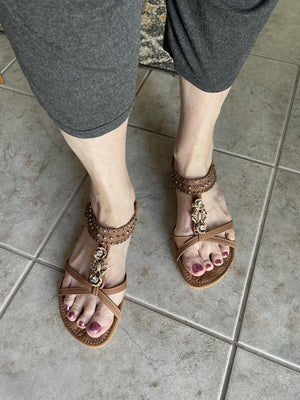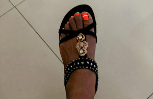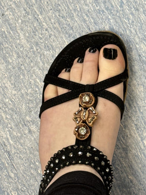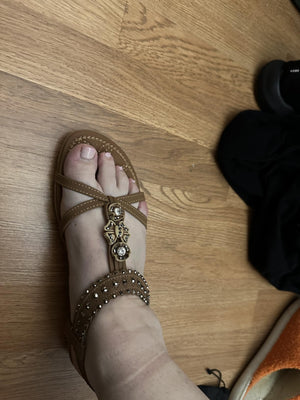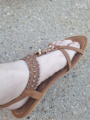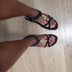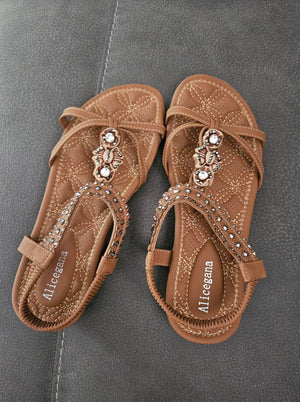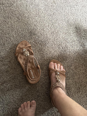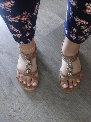 Adatti sia per look casual che eleganti, questi sandali boho con decorazioni in strass aggiungono un tocco glamour a ogni outfit.